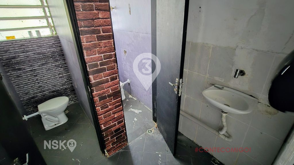 Loja com 117m² com Pé direito elevado, vão livre com 2 banheiros, comdireito a 2 vagas na frente.
