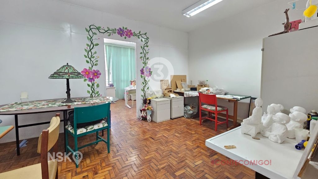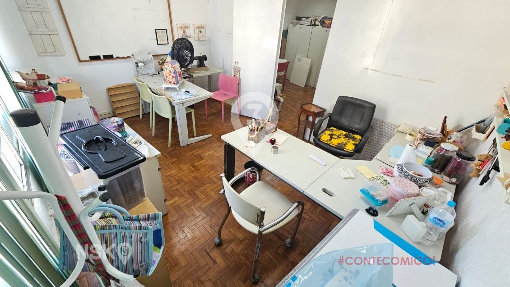 Sala comercial com 50m², recepção, cozinha, banheiro, salas, sem vaga de garagem.