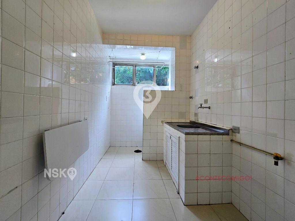 Kitnet com quarto, banheiro, copa/cozinha, área de serviço. Portaria 24hrs