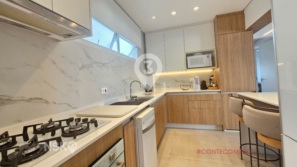 Apartamento moderno com 80m², andar alto, sendo 2 dormitórios, ampla sala, lavabo, armários, ar condicionado, quarto de empregados, área de serviços, 1 vaga de garagem.