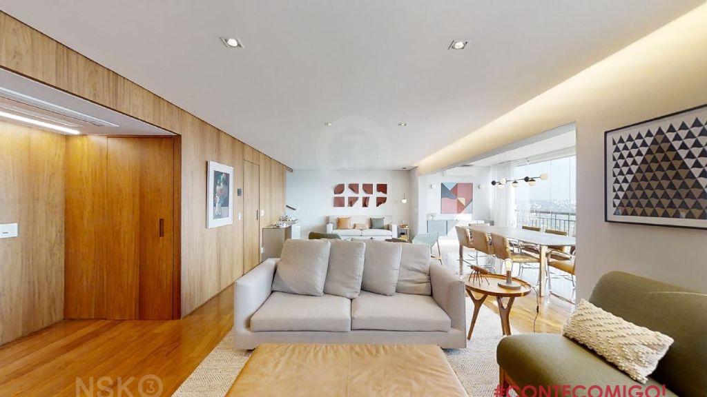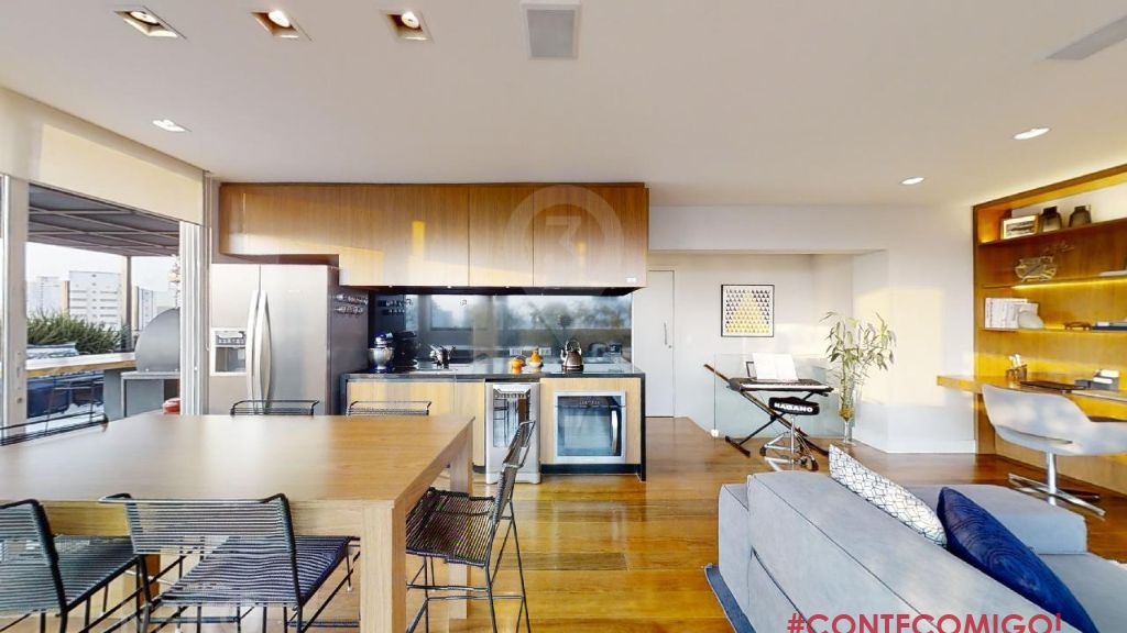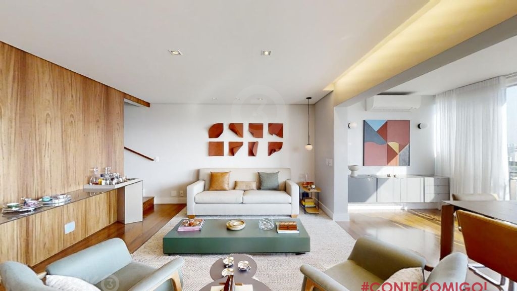 Cobertura duplex em Pinheiros, decorada com muito charme e aconchego para incentivar o convívio familiar e receber os amigos. Piso inferior: 4 dormitórios sendo 2 suítes; Suíte principal com 2 closets. Salas de estar e jantar integradas com terraço envidraçado; cozinha, área de serviço, lavabo, adega climatizada, wc serviço. Superior: sala home theather integrada a cozinha gourmet, despensa, sala de música; terraço gourmet, piscina, hidromassagem e banheiro, 5 vagas de automóvel fixase depósito. Projeto de interiores de Alessandra Riera, da Ar.kitekt e paisagismo de Thalita Vitachi, da Plantare Paisagismo. A cobertura, com um pôr do sol mágico, tem vista ampla ao entorno do bairro, ao Pico do Jaraguá e à Serra da Mantiqueira, garantindo muita luminosidade aos ambientes sociais integrados dos dois pavimentos. Os 4 dormitórios - detalhe para a suíte principal com dois closets, também recebem muito sol ao longo do dia. Apartamento mobiliado com marcenaria sob medida impecável dos dormitórios à cozinha.
