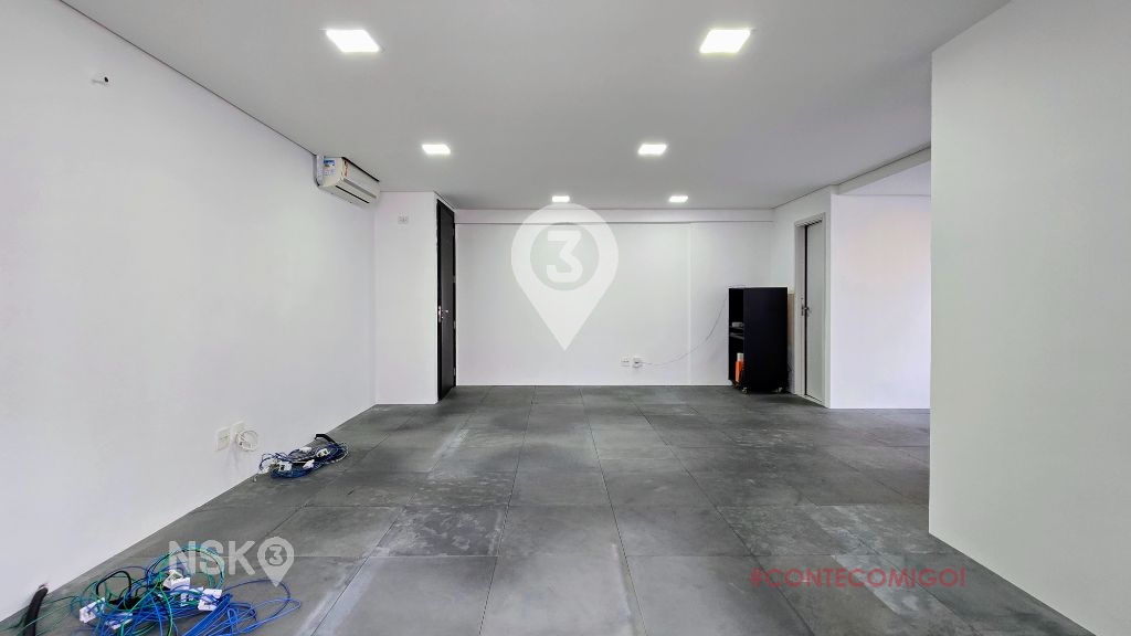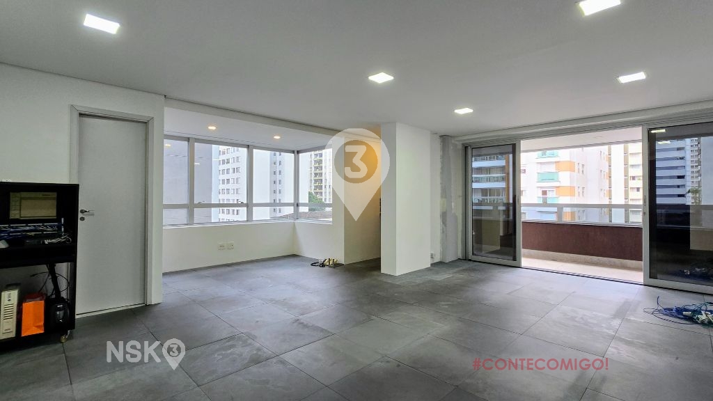 Sala para Locação com Piso Elevado, uma copa e equipada com Ar-condicionado, Clara e Arejada, possui varanda. 2 Vagas