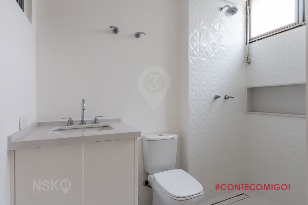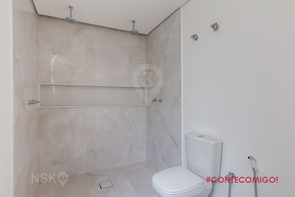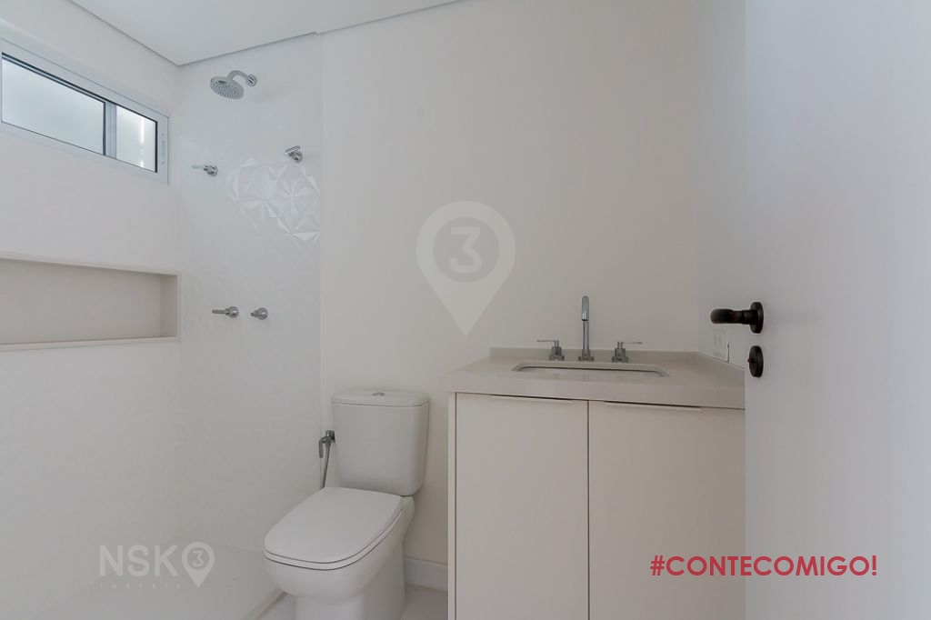 O banheiro da suíte também foi modernizado, tudo para atender o Sr. e a Sra. Com armário embaixo da pia dupla, conta ainda com chuveiro duplo, luxo total.